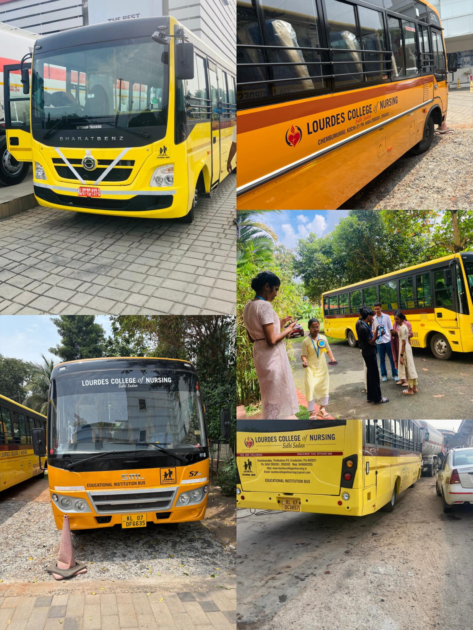 Lourdes College of Nursing offers reliable and well-organized transportation facilities to ensure safe and convenient travel for students and staff. The college operates a fleet of buses that cover major routes across the city and nearby areas, connecting the campus with hostels, affiliated hospitals, and key residential zones. All vehicles are maintained regularly and operated by trained drivers, with a focus on safety, punctuality, and comfort. These services are especially beneficial for clinical postings, community visits, and academic field trips, supporting the smooth functioning of both academic and extracurricular schedules.